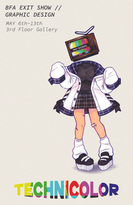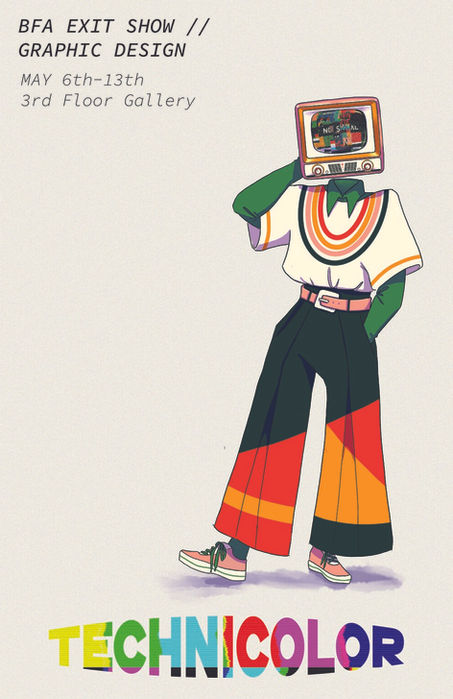 I curated my senior design exhibition. Developed the theme to reflect our cohort’s bold use of color and the surreal, screen-based experience of our final year. I also designed the full branding suite (print and digital), managed the show’s Instagram (@technicolor_2021), designed the gallery layout for 30 exhibiting students, and planned an opening night celebration. Leading this project during the pandemic was a massive undertaking—and one of my proudest accomplishments.